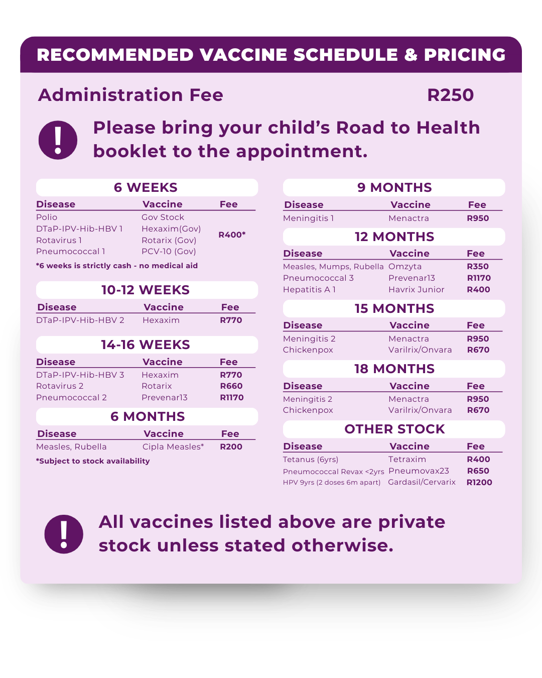 We are delighted to welcome you and your little one to our Baby Clinic. Our clinic is designed to provide a calm, supportive, and professional environment where your baby’s health and development are our priority. From routine immunisations to trusted guidance, we aim to partner with parents every step of the way during your child’s early years.